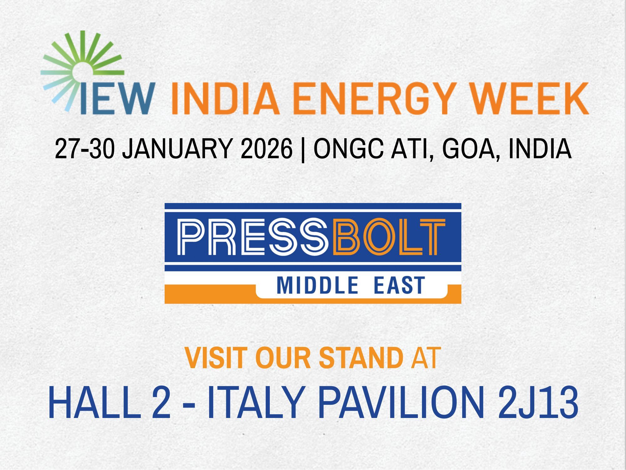 We’re excited to announce that Pressbolt Middle East will be exhibiting at India Energy Week on 27-30 January 2026 in Goa, India.